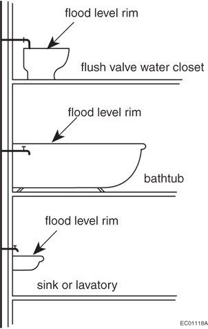 Figure A-1.4.1.2.(1)-B shows a situation that is fairly common in old buildings. If the bathtub is